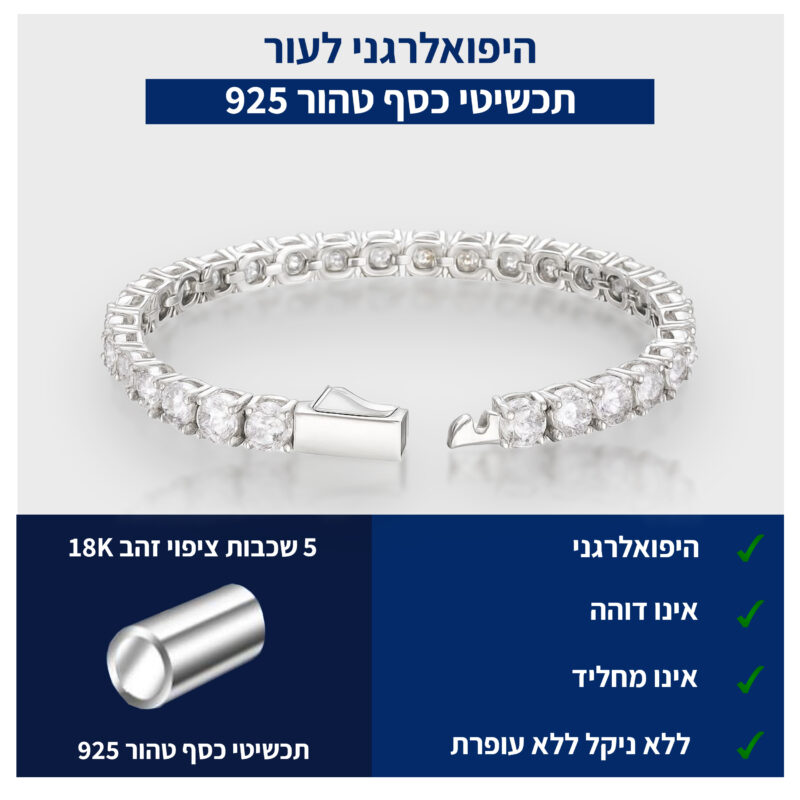 אבן החן המרכזית שבה אנו משתמשים היא מואסנייט — אבן בעלת ברק יוצא דופן המדמה יהלום טבעי ומעניקה תחושת יוקרה במחיר נגיש.
