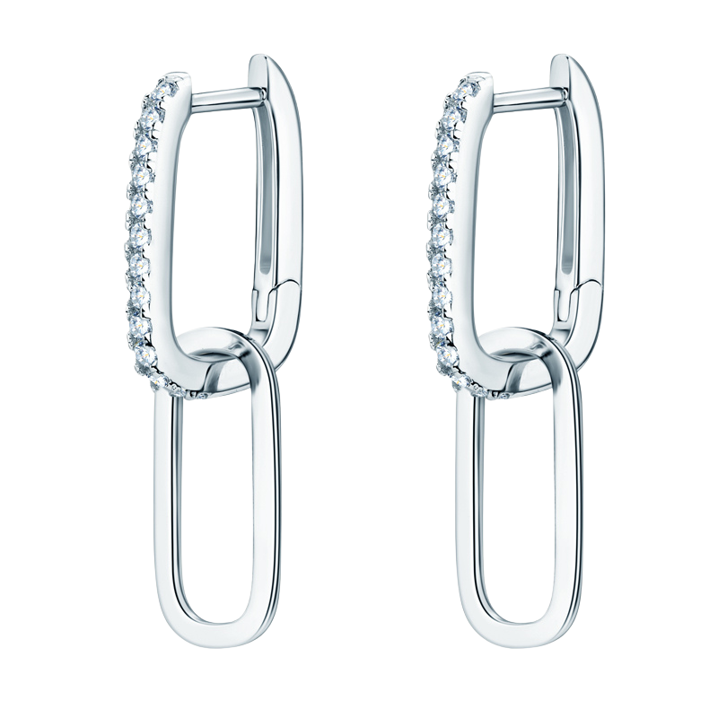 עגילי חוליות בעיצוב עדין ומודרני, משובצים באבני מואסנייט קטנות בחלק העליון ליצירת ברק אלגנטי ועדין. עיצוב החוליות הארוכות מעניק מראה מתוחכם וקליל, המשתלב בקלות עם כל סגנון לבוש — יומיומי או ערב. העגילים ניתנים לפירוק וניתנים ללבישה גם כחישוק עדין בלבד. מגיעים עם תעודה בינלאומית.