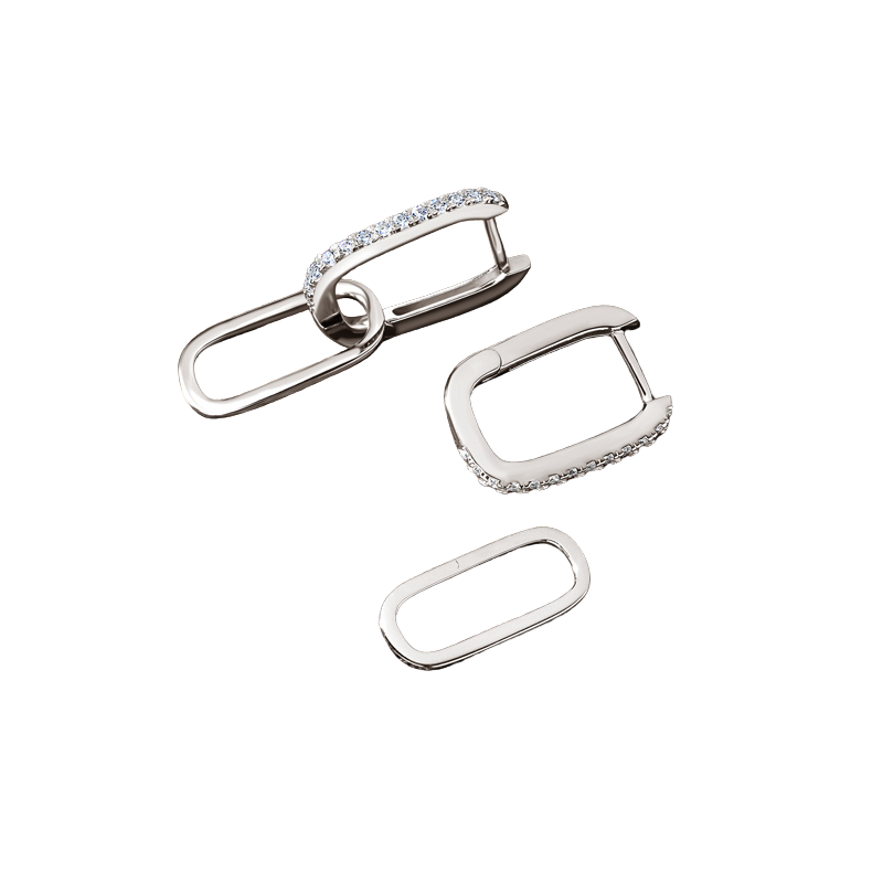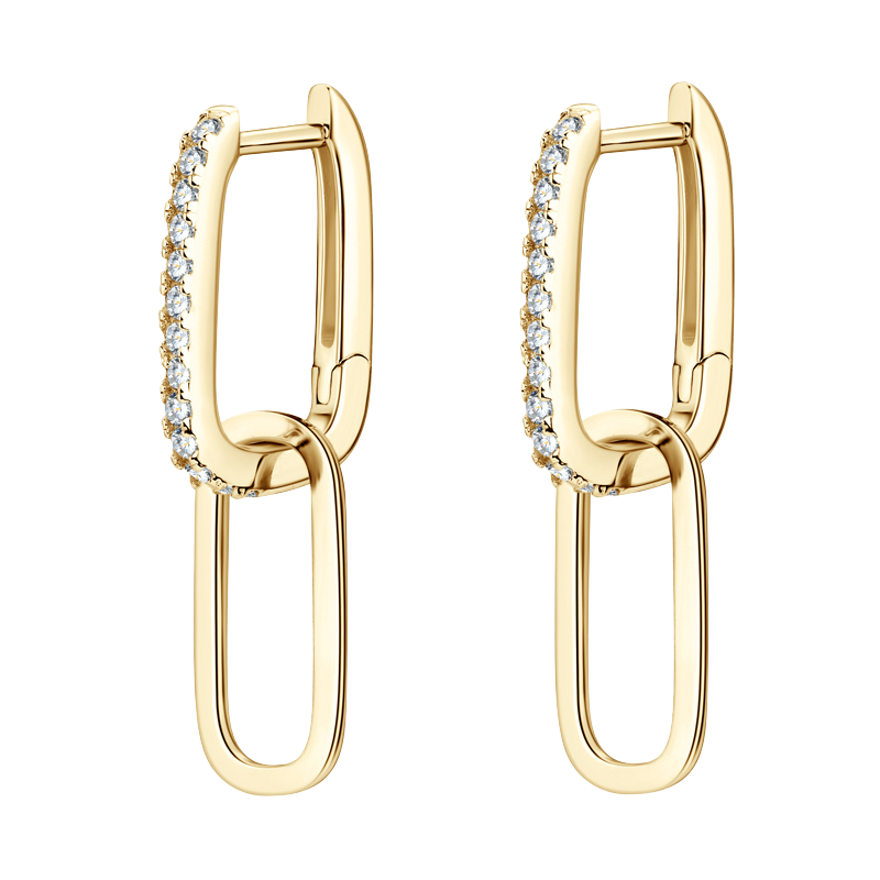 עגילי חוליות בעיצוב עדין ומודרני, משובצים באבני מואסנייט קטנות בחלק העליון ליצירת ברק אלגנטי ועדין. עיצוב החוליות הארוכות מעניק מראה מתוחכם וקליל, המשתלב בקלות עם כל סגנון לבוש — יומיומי או ערב. העגילים ניתנים לפירוק וניתנים ללבישה גם כחישוק עדין בלבד. מגיעים עם תעודה בינלאומית.