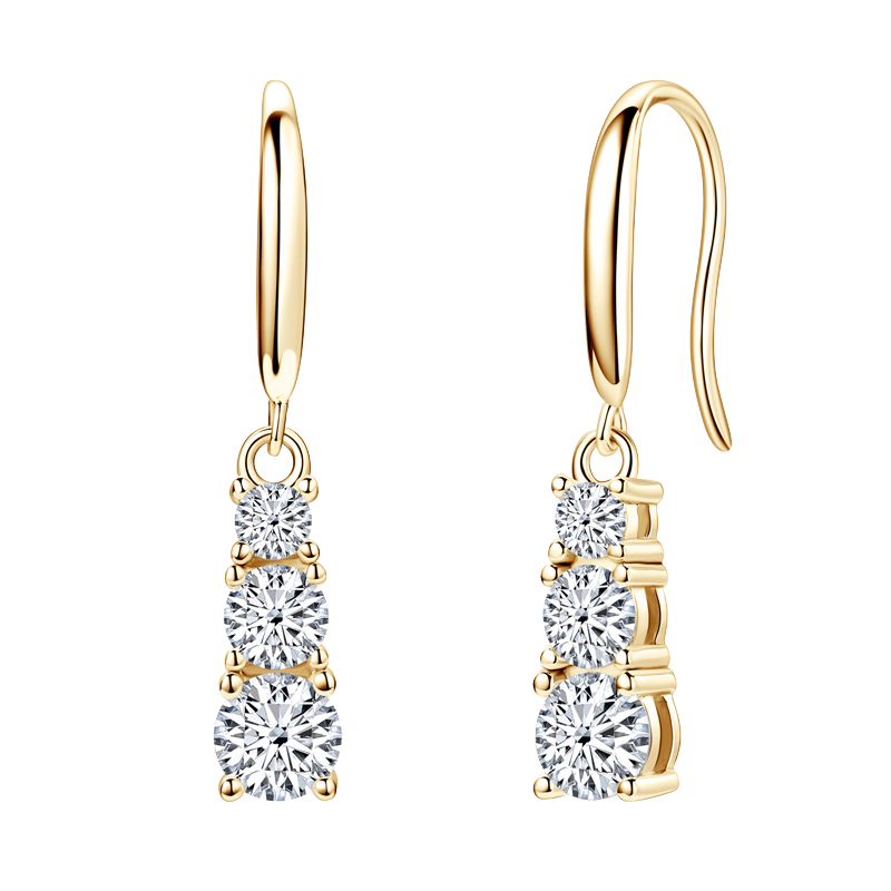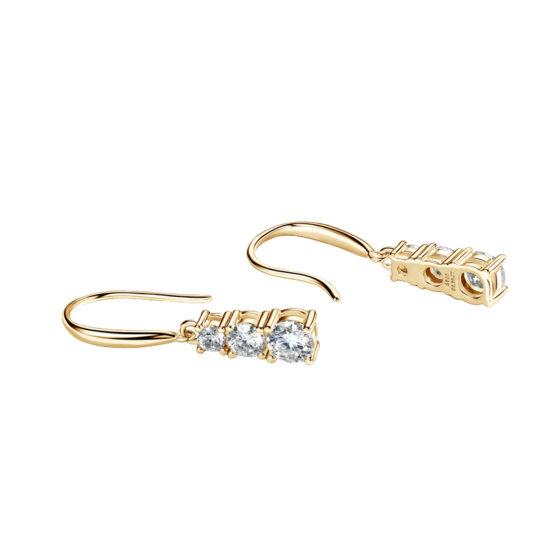 עגילי תלייה מדורגים בעיצוב אלגנטי ועדין, משובצים בשלוש אבני מואסנייט עגולות בגדלים שונים – 3 מ”מ, 4 מ”מ ו־5 מ”מ – היוצרות ברק עשיר וניצוץ רך בתנועה. העיצוב המדורג מעניק לעגילים מראה נשי וזורם, מושלם לכל סגנון ולכל אירוע. העגילים מגיעים עם תעודה בינלאומית.