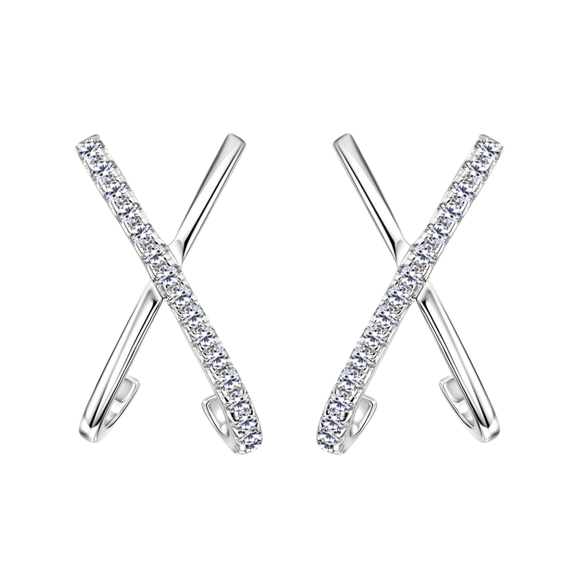 עגילי X מעוצבים באלגנטיות מודרנית ומשובצים באבני מואסנייט בקוטר 1.4 מ”מ, המעניקות ברק עדין וניצוץ ייחודי.