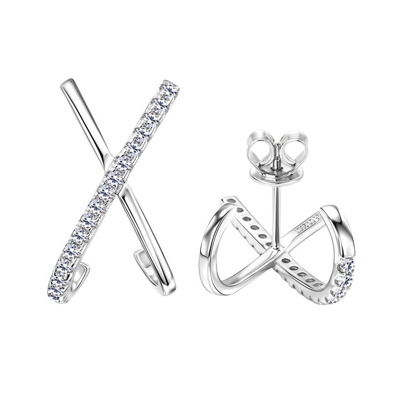 עגילי X מעוצבים באלגנטיות מודרנית ומשובצים באבני מואסנייט בקוטר 1.4 מ”מ, המעניקות ברק עדין וניצוץ ייחודי.
