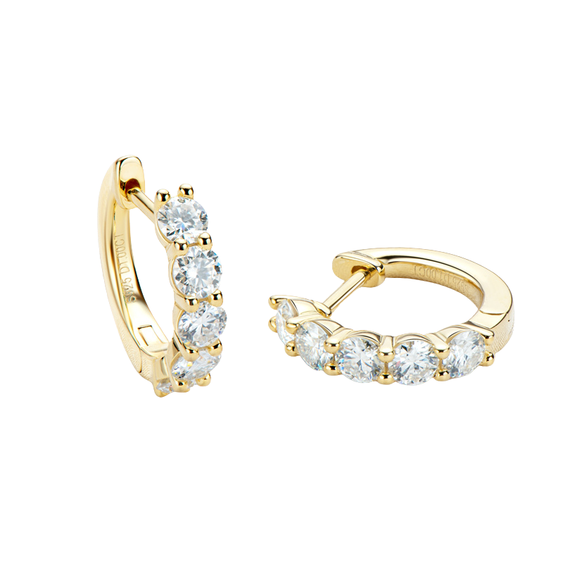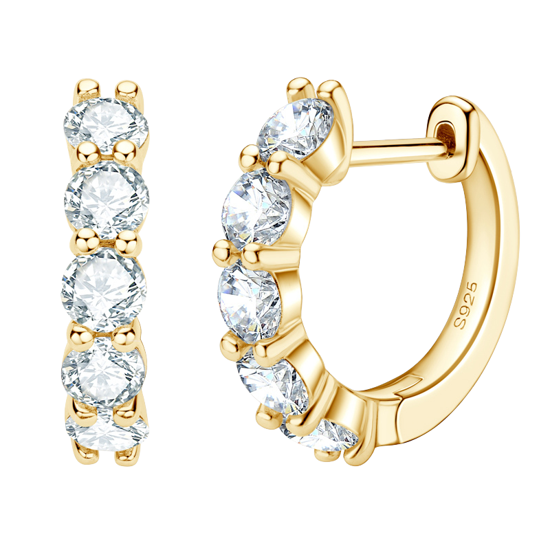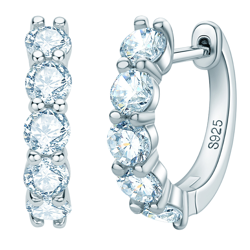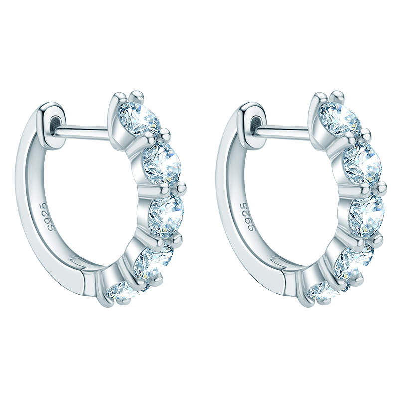 עגילי חישוק משובצים בעיצוב אלגנטי ונוצץ.העגילים משובצים באבני מואסנייט עגולות בקוטר 3.5 מ”מ, המעניקות ברק עשיר וניצוץ עדין. המבנה המעוגל והסגירה הנוחה מבטיחים נוחות יומיומית ומראה נשי ומוקפד.