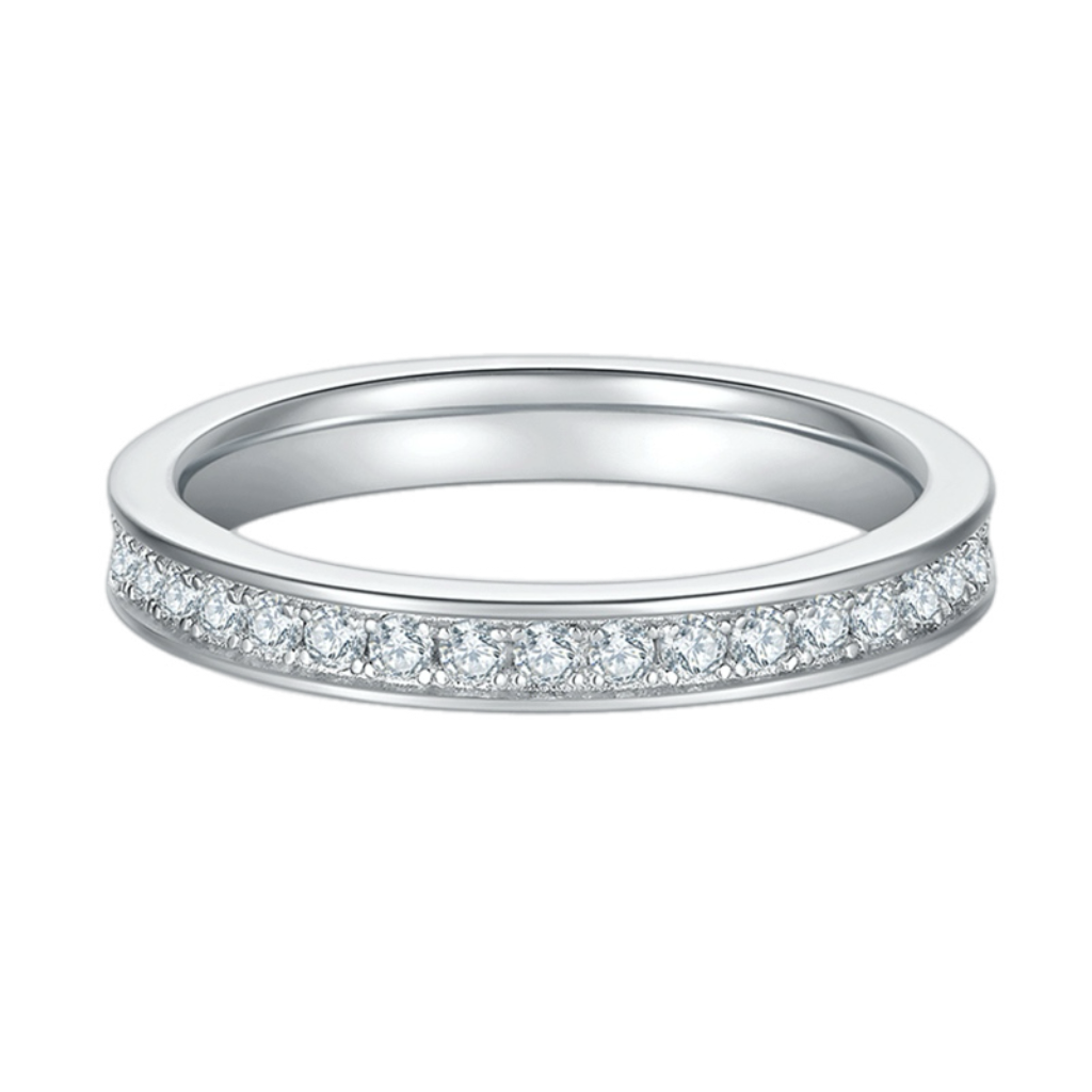 טבעת איטרניטי מלאה בשיבוץ תעלה (Channel Set) עיצוב מיוחד של אבנים שמשובצות בתוך גוף הטבעת ולכל אורכה, הטבעת מגיעה עם תעודה בינלאומית